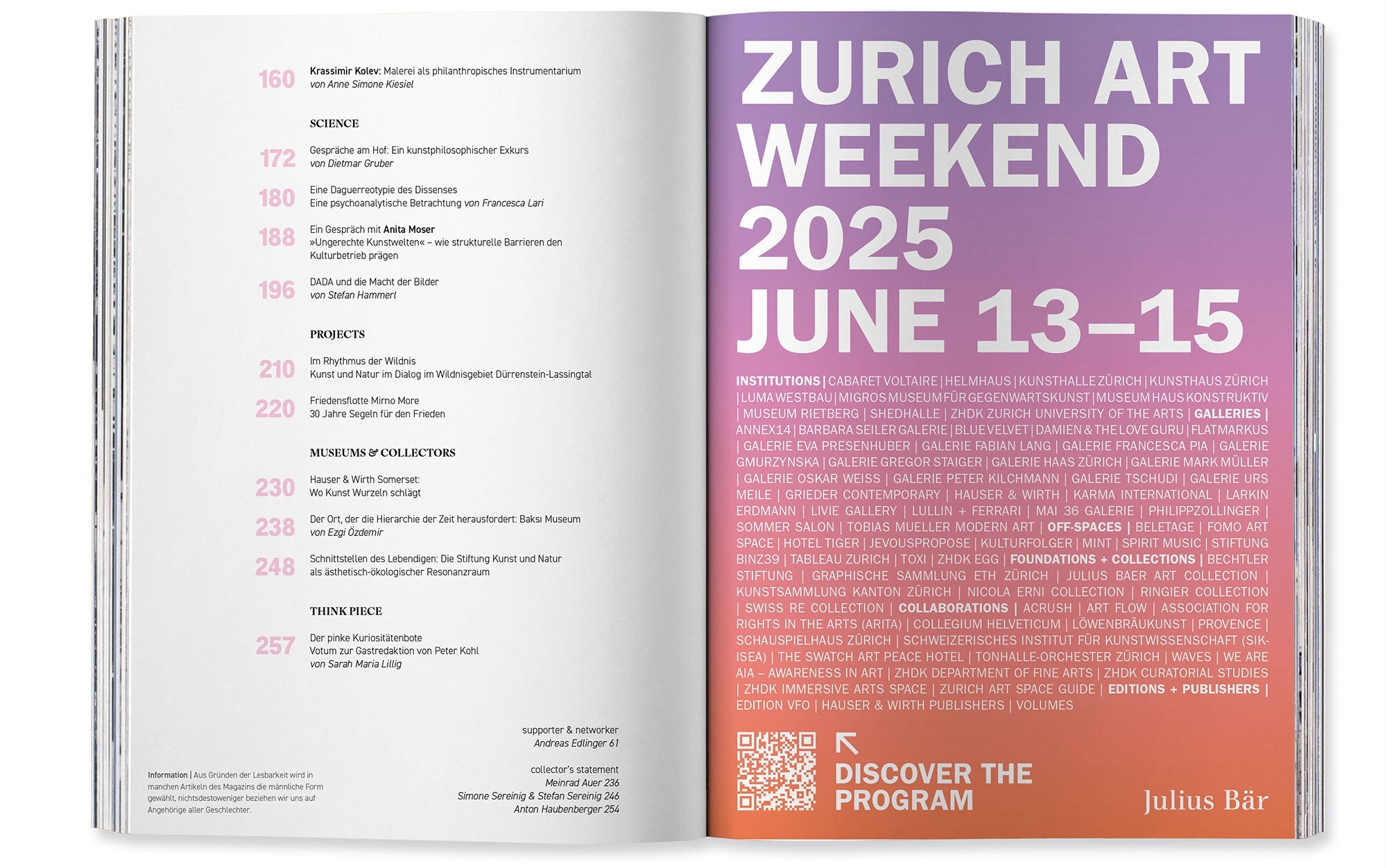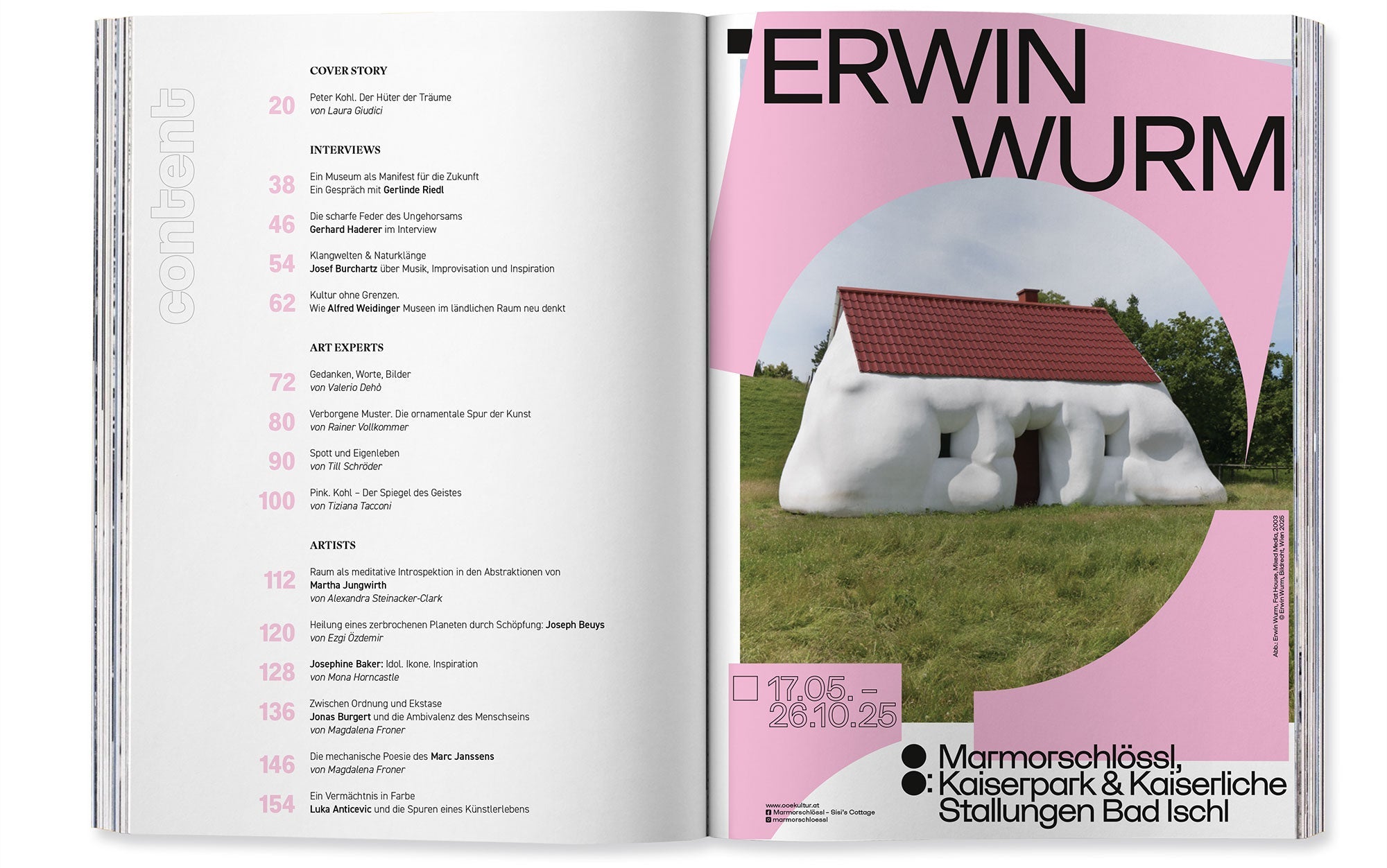 Ein Jahr lang haben wir diskutiert, verworfen, neu gedacht – immer irgendwo zwischen Ateliergespräch, zünftiger Jause am Hof und Redaktionssitzung. Entstanden ist eine Ausgabe, die Skizzenbuch, Atelier, Galerie, Bühne, Lebensraum und Opus magnum zugleich ist und die überall Spuren hinterlässt: kunstvoll, kantig, klug, naturverbunden, pink. Mit einem schelmischen Seitenblick. Und vollem Ernst.